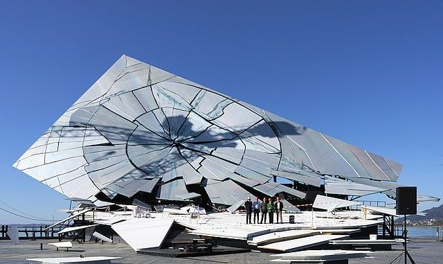Nach und nach ist das Bühnenbild für La traviata in den vergangenen Monaten aus den Winternebeln am See gewachsen: ein schillernder Spiegel mit den enormen Maßen von 700 Quadratmetern Fläche und rund 28 Metern Höhe*, zerbrochen in 86 einzelne Teile – von winzig kleinen Splittern bis zu großen Bruchstücken, die teils gleichzeitig als ausklappbare Spielflächen dienen. Über die Hälfte der Spiegelsplitter können aktiv bewegt werden und zeichnen im Laufe der Aufführung symbolisch die Entwicklung der Hauptfigur Violetta nach, die an der oberflächlichen Pariser Gesellschaft seelisch und körperlich zerbricht.