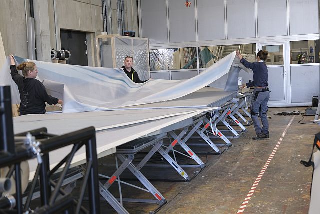Nach der Fertigstellung der statischen Strukturen beginnt Ende Februar auf der Seebühne die nächste, entscheidende Phase des Aufbaus: die Montage der 700 Quadratmeter großen Spiegelwand, Herzstück und visuelles Zentrum des Bühnenbildes. An ihrer höchsten Stelle wird sie über 25 Meter in die Höhe ragen.