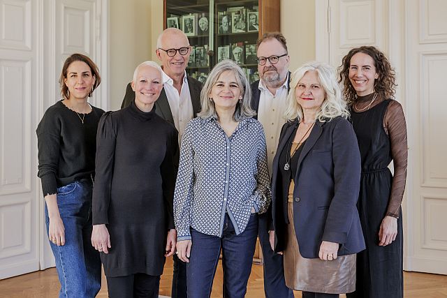 v. l. n. r.: Laura de Weck, Kathrin Matern, Friedhelm Marx, Shirin Sojitrawalla, Jürgen Kaube, Maria Carolina Foi, Lara Sielmann