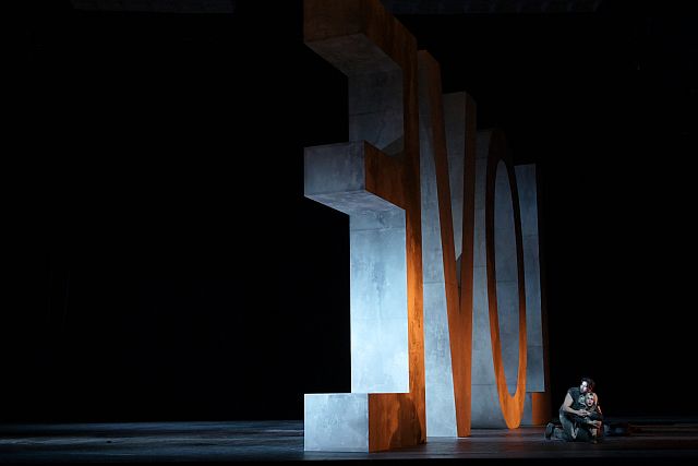 Manon Lescaut von Giacomo Puccini (1858-1924) in der Sicht des dem katalanischen Künstlerkollektiv La Fura dels Baus angehörenden Regisseurs Àlex Ollé zählt zu den großen Erfolgen der Frankfurter Opernsaison 2019/20. Ollé hat sich von seinem Bühnenbildner Alfons Flores ein sehr realistisch anmutendes Setting bauen lassen, in dem die Geschichte Manons ebenso realistisch erzählt wird: Busbahnhof, Tabledance-Bar, Flüchtlingslager. Im letzten Akt ist die Bühne leergeräumt, nur die monumentalen Lettern des Wortes LOVE ragen einsam in den Bühnenhimmel. In deren Schatten haucht Manon elendiglich ihr Leben aus.