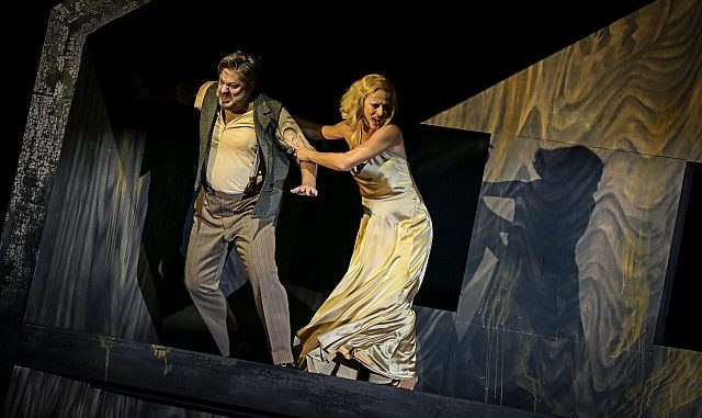 Dass es am Ende für Paul, entgegen dem Libretto, keinen Neuanfang geben kann, zeigt Regisseurin Angelo Denoke plakativ. Statt die Stadt Brügge zu verlassen, gibt er sich in Brigittas Hände, die ihn mit ihrem Schal kurzerhand von seinem Leid erlöst (oder sich für seine Ablehnung ihr gegenüber rächt), indem sie ihn erdrosselt.