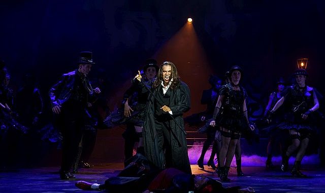 In Wiesbaden wird das Musical ohne Kürzungen gespielt. Mit drei Stunden inklusive einer Pause ist die Spieldauer eine halbe Stunde länger als beispielsweise am Staatstheater Darmstadt im Jahr 2023 (Besprechung). Eine gewisse Länge macht sich schon zu Beginn deutlich. Es dauert bis zur großen „Schafft die Männer ran“-Nummer, bis das Musical an Fahrt aufnimmt. Ab dann packt es (wobei auch die Ensemblenummer „Mörder, Mörder“ im zweiten Akt etwas gedehnt wirkt).