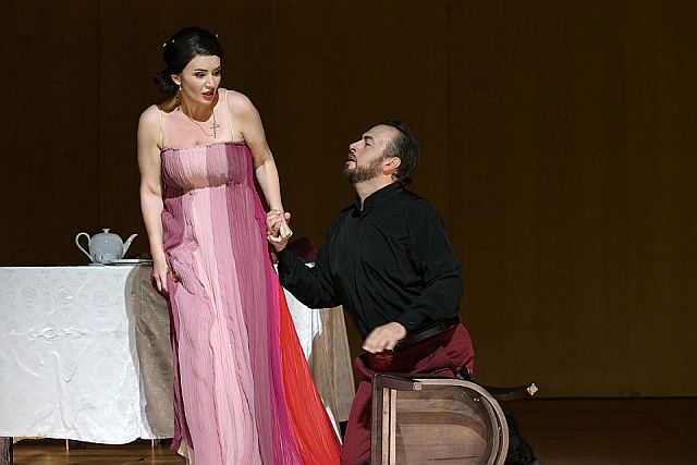 Floria Tosca (Bianca Margeǎn) und Baron Scarpia (Łukasz Goliński)