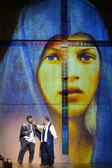 v.l.n.r. Cesare Angelotti (Aleksander Myrling) und Mario Cavaradossi (Stefano La Colla)