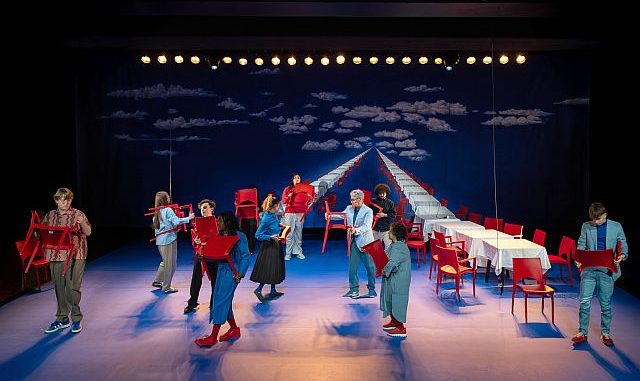 Das Schauspiel Frankfurt gastiert am Donnerstag, 18. Dezember um 19.00 Uhr mit der Inszenierung »B-Heimat. Orte unserer Sehnsucht« in der Mehrzweckhalle der Lindenauschule in Hanau-Großauheim. Das Gastspiel ist Teil einer Kooperation zwischen dem Schauspiel Frankfurt und der Lindenauschule, die aus der Schülerausstellung »¿Angeworben–Angekommen?« zur spanischen und italienischen Arbeitsmigration hervorgegangen ist.