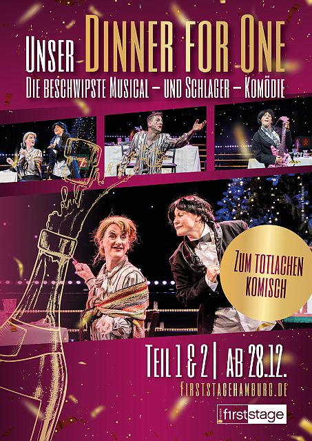 Diese Tickets gehören definitiv unter den Weihnachtsbaum: Im First Stage Theater ist „Unser Dinner for One“ längst zur festen Tradition rund um den Jahreswechsel geworden – ein echtes Highlight, das viele unserer Besucher nicht mehr missen möchten.