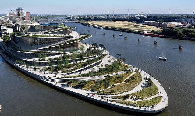The result is a three-dimensional public park open and accessible from all sides, with expansive views in all directions – to the old city and the new, to the Lohse Park and the Industrial Port.