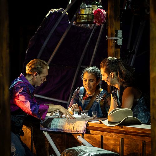 Am Donnerstag, 19. März, ist um 19.30 Uhr das Theaterhaus Jena mit „Die Gesetzlosen“ nach dem Roman Outlawed von Anna North zu Gast. Regisseurin Anne Sophie Kapsner greift Motive des klassischen Westerns auf und stellt sie radikal auf den Kopf. In einer von Krankheit und religiösem Dogmatismus geprägten Gesellschaft schließen sich queere Außenseiterinnen und Außenseiter zu einer Bande zusammen und entwerfen Gegenbilder zu patriarchalen Normen – humorvoll, kraftvoll und überraschend aktuell.